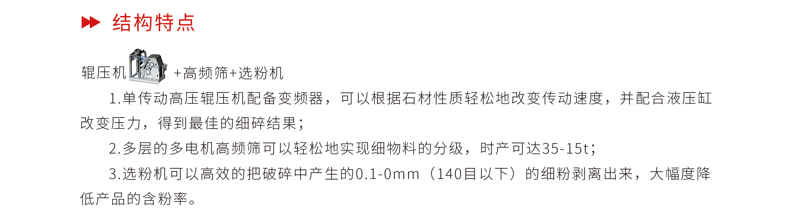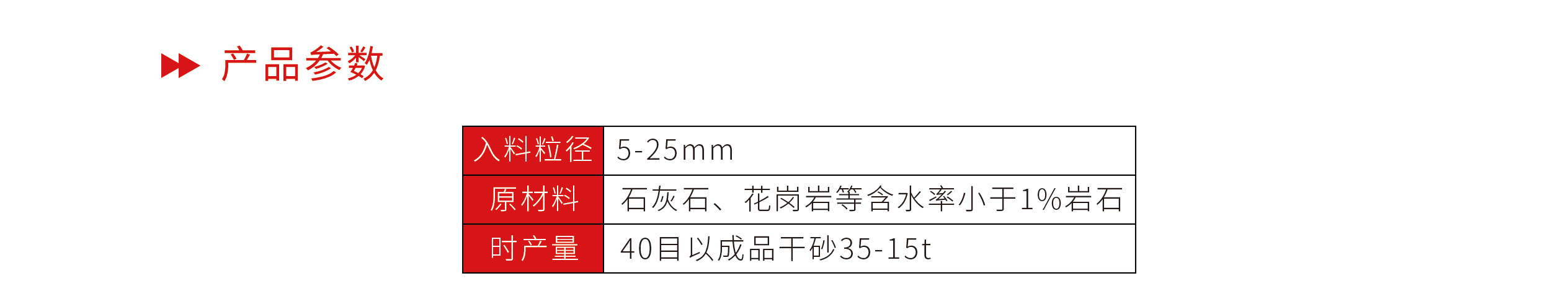 | 原材料 | 石灰石、花崗巖等含水率小于1%巖石 |