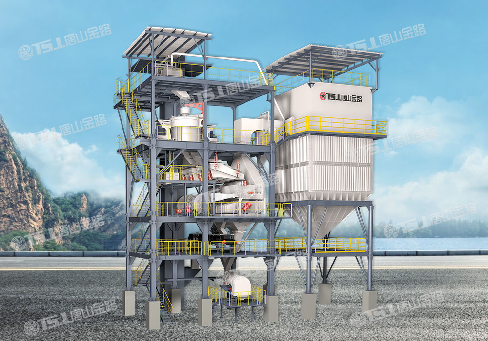 唐山金路V9干式制砂樓主要用于高品質(zhì)機制砂的生產(chǎn)中,由五孔碾磨制砂機、空氣篩、粗細粉分離機、加濕拌合機等設(shè)備組成。